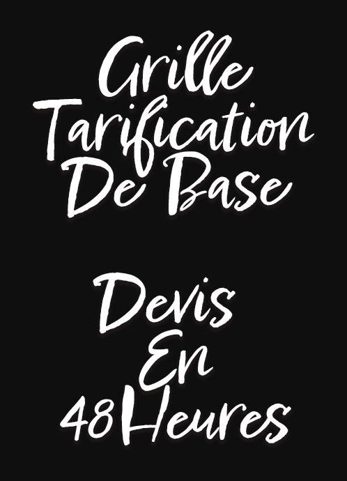 Grille tarifaire de base. Chaque demande fait l’objet d’un devis rédigé en fonction des besoins et des attentes du client.
